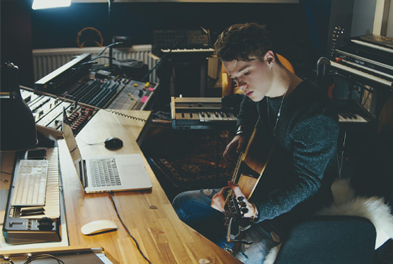 iB MUSIC STUDIO & School のギタークラスは、防音スタジオ併設。 周囲を気にせず、しっかり音を出しながら練習できます。