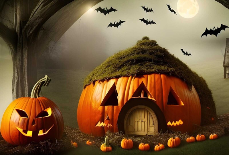 10月の夜、街はオレンジ色のランタンと仮装した人々でにぎわっています。