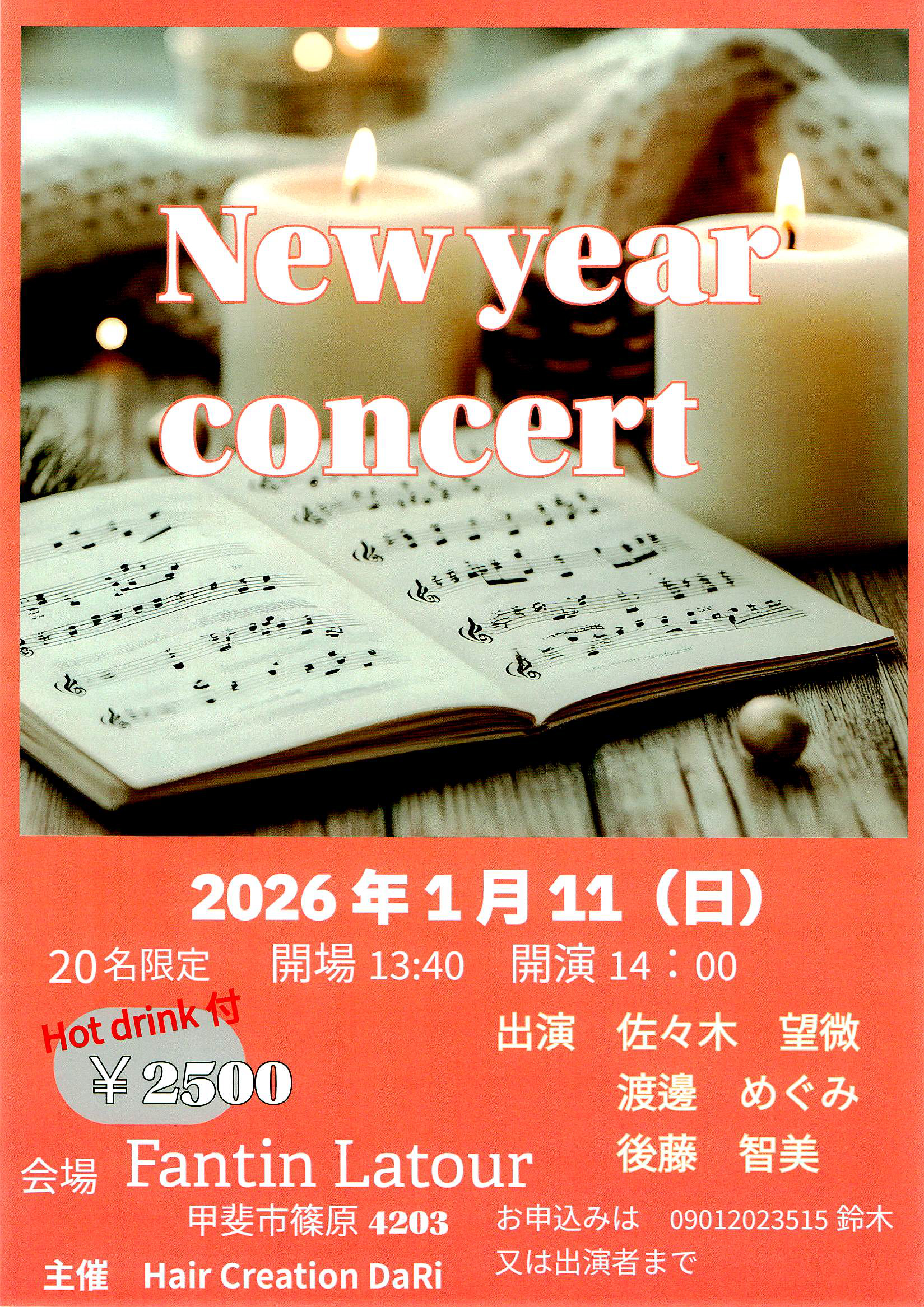 2026年1月11日(日)に開催される New year concert のイベント情報を、画像内の内容のみを基にまとめました。